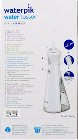 Van de Waterpik WP 490 Draadloze Waterflosser is klinisch bewezen dat deze effectiever tandplak, gingivitis en bloedend tandvlees bestrijdt dan traditioneel flosdraad. De Waterflosser is ideaal voor iedereen met een beugel of implantaat en voor mensen met een kroon, brug of facing.