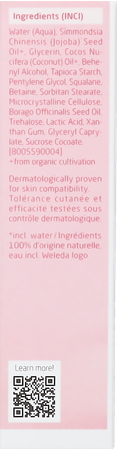 Water (Aqua), Glycerin, Cocos Nucifera (Coconut) Oil, Behenyl Alcohol, Tapioca Starch, Pentylene Glycol, Squalane, Betaine, Sorbitan Stearate, Microcrystalline Cellulose, Borago Officinalis Seed Oil, Trehalose, Lactic Acid, Xanthan Gum, Glyceryl Caprylate, Sucrose Cocoate