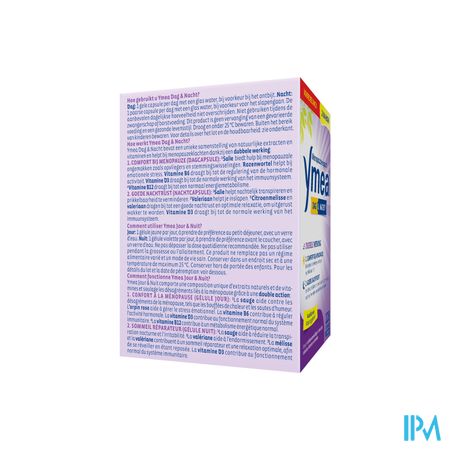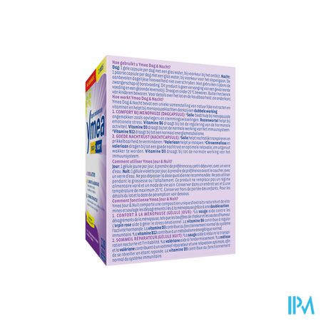Ymea Dag & Nacht is een voedingssupplement. Dit product is geen vervanging van een gevarieerd en evenwichtig dieet en een gezonde levensstijl. Bewaren op een droge plaats onder 25 °C. Buiten het zicht en bereik van jonge kinderen houden.