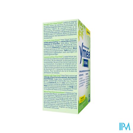 Ymea Totaal is een voedingssupplement. Dit product is geen vervanging voor een gevarieerd en evenwichtig dieet en een gezonde levensstijl. Bewaren op een droge plaats onder 25 °C. Buiten het zicht en bereik van jonge kinderen houden. Niet gebruiken tijdens de zwangerschap of de borstvoeding.