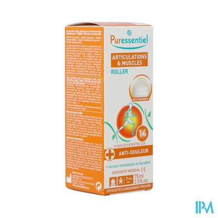 De roller Gewrichten & Spieren is aanbevolen voor sporters (vóór en na de inspanning) en personen die last hebben van acute of chronische spier- of gewrichtspijn (stijve nek, rugpijn, spasmen, spierpijn, stijfheid, …). De combinatie van de massagekogel en de 14 essentiële oliën met ontspannend parfum biedt u welzijn en een natuurlijke en doeltreffende oplossing tegen pijn. Schud de roller krachtig en gebruik 3 keer per dag op de pijnlijke gewrichten of spieren (rug, nek, schouders, ellebogen, polsen, handen, heupen, knieën, dijen, kuiten, enkels, voeten...). De massagekogel van de roller is ideaal om zelf de pijnlijke zones te masseren en de spier zo te ontspannen. U kunt ook meer product gebruiken en verder gaan met een manuele massage. Was in dit geval de handen na gebruik. Cajeput, Camomille romaine, Giroflier, Eucalyptus globuleux, Gaulthérie, Genévrier, Lavandin grosso, Marjolaine à coquilles, Menthe poivrée, Niaouli, Noix de Muscade, Pin sylvestre, Romarin à cinéole, Térébenthine. Puressentiel Gewrichten Roller 14 Ess Olie 75ml is een voedingssupplement, verkrijgbaar in uw buurtapotheek of online apotheek. Neem niet meer dan de aanbevolen dagelijkse dosis vermeld op de verpakking. Het vervangt geen gezonde levensstijl en gevarieerde en evenwichtige voeding. Vraag raad aan uw apotheker. Het product altijd buiten het bereik van kinderen houden. Gewrichten - Spieren Vanaf 7 jaarOmschrijving