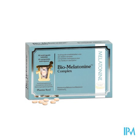 Bio-Melatonine Complex Comp 60 is een voedingssupplement, verkrijgbaar in uw buurtapotheek of online apotheek. Neem niet meer dan de aanbevolen dagelijkse dosis vermeld op de verpakking. Het vervangt geen gezonde levensstijl en gevarieerde en evenwichtige voeding. Vraag raad aan uw apotheker. Het product altijd buiten het bereik van kinderen houden. Bio-Melatonine Complex is een voedingssupplement dat per smelttablet 0,29 mg van de actieve stof melatonine bevat. Daarnaast bevat het nog 10 mg niacine. In te nemen kort vóór het slapengaan. Slaap Overmatig gebruik kan een laxerend effect hebben. Niet aangewezen voor kinderen jonger dan 12 jaar. Niet geschikt voor zwangeren en lacterende vrouwen. 1/2 tablet per dag laten smelten onder de tong (sublinguaal), kort voor het slapengaan. *RI: Referentie-inname Ingrediënten:Belangrijke info