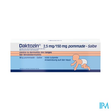 Luierdermatitis De werkzame stoffen in dit middel zijn miconazolnitraat en zinkoxide. Elke gram zalf bevat 2,5 mg miconazolnitraat en 150 mg zinkoxide. De andere stoffen in dit middel zijn witte vaseline (bevat butylhydroxytolueen (E321)), trihydroxystearine en seringbloesemparfum (bevat allergenen, zie rubriek 2: Daktozin bevat butylhydroxytolueen (E321) en een allergenen bevattende geurstof.). Wanneer mag u dit middel niet gebruiken? Uw baby of peuter is allergisch voor een van de stoffen in dit geneesmiddel. Deze stoffen kunt u vinden in rubriek 6 van deze bijsluiter. Uw baby of peuter is allergisch voor andere gelijkaardige geneesmiddelen tegen schimmels. Wanneer moet u extra voorzichtig zijn met dit middel? Neem contact op met uw arts of apotheker voordat u dit middel gebruikt. U mag Daktozin niet aanbrengen op open wonden. U moet ieder contact met de ogen vermijden. Daktozin kan ernstige allergische reacties veroorzaken. U dient zich bewust te zijn van tekenen van een allergische reactie wanneer u Daktozin gebruikt (zie "Mogelijke bijwerkingen").Indicaties