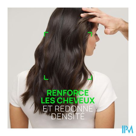 • DOELTREFFENDE AANVULLING TEGEN HAARUITVAL: de laatste stap van haaruitvalroutines, versterkt het haarkapitaal. • VERSTERKT EN ONTWART: versterkt de haarstructuur van bij de wortel en vergemakkelijkt het ontwarren. • VOLUME-EFFECT: het haar is voller en weerbaarder en heeft zichtbaar meer volume.