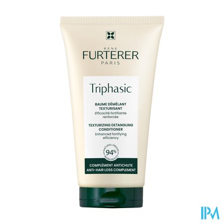 Deze texturiserende ontwarrende haarbalsem vervolledigt de werking van de behandelingen tegen progressieve of occasionele haaruitval en van de Stimulerende shampoo met etherische oliën uit het TRIPHASIC gamma. De balsem werd samengesteld op basis van natuurlijk Pfaffia-extract en ATP en werd verrijkt met texturiserende tarwe-eiwitten. Hij versterkt de haarstructuur van bij de wortel, vergemakkelijkt het ontwarren en geeft zichtbaar volume. Het haar is perfect ontward, zacht en glanzend. Siliconenvrij. 94% ingrediënten van natuurlijke oorsprong. Bioafbreekbare formule.