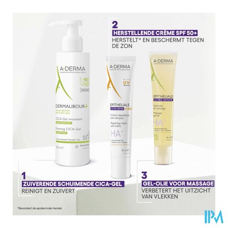 EPITHELIALE ULTRA REPAIR SPF50+ 2-in-1 herstellende crème helpt de beschadigde huid te herstellen* en biedt een zeer hoge SPF50+ zonnebescherming, met een dubbele werking tegen littekens en pigmentvlekken. Deze herstellende crème voor gezicht en lichaam bevat een gepatenteerd** herstellend complex van 3 actieve ingrediënten genaamd Cicahyalumide®, bestaande uit dipeptide, hyaluronzuur en Rhealba® haverextract. Het bevat ook Kattenklauw voor zijn ultrakalmerende eigenschappen. En om een optimale tolerantie tijdens het gebruik te garanderen, bevat het fotoprotectieve systeem slechts 4 filters in een geoptimaliseerde concentratie. Deze herstellende crème voor de beschadigde huid is ideaal om de huid dagelijks te kalmeren en te beschermen. Hij is parfumvrij en geschikt voor zowel volwassenen als kinderen, en kan meerdere keren per dag worden aangebracht op het gezicht en lichaam. Rhealba® Haver van biologische landbouw Veganistische info: geen ingrediënten van dierlijke oorsprong