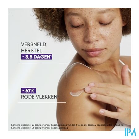 • HELPT de fragiele huid te HERSTELLEN*. • TEGEN rode en bruine VLEKKEN: ideaal na oppervlakkige huidbeschadigingen of oppervlakkige dermatologische of cosmetische ingrepen. • BESCHERMT de huid die dagelijks wordt blootgesteld aan UV-stralen dankzij de zeer hoge SPF50+ bescherming.