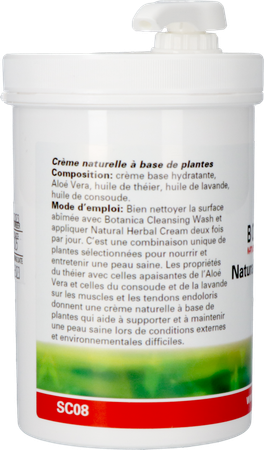 Aloë vera, smeerwortel (comfrey), lavendel, tea tree olie. U kunt de Botanica Natural Herbal Cream tweemaal daags aanbrengen nadat u uw dier heeft behandeld met de Cleansing Wash. Wanneer uw (huis)dier last heeft van een geïrriteerde, vuile of verwonde huid kunt u de Natural Herbal Cream van Botanica gebruiken. Deze zalf heeft een verzachtende, voedende werking en vermindert de vorming van wild vlees (fibroom) en littekenweefsel. De Herbal Cream kan gebruikt worden wanneer er sprake is van mok, insectenbeten of een verwonde huid. Let op: Neem bij een diepe, ontstoken of bijtwond altijd eerst contact op met uw dierenarts. Geïrriteerde, vuile of verwonde huidSamenstelling