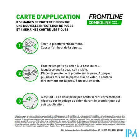 Frontline Combo®Line is een eenvoudig aan te brengen vloeistof die je hond beschermt tegen vlooien en teken. Ook je huis is dankzij dit product resistent tegen vlooien.Frontline Combo®Line beschermt je hond 4 weken tegen teken en 4 weken tegen vlooien. Voor honden van 2kg tot 10kg.